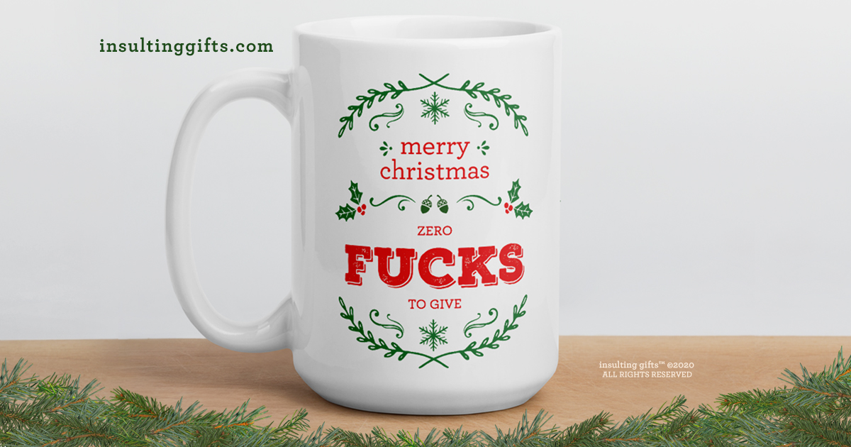 Merry Christmas Zero Fucks To Give – large designer mug from Insulting Gifts
